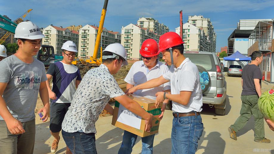 時至半夏,烈日炎炎,酷暑難擋。在一年中最炎熱的季節里,公司一線作業人員仍散布在城市的各個角落里,與高溫抗衡,為武漢城市建設和發展辛勤工作,默默付出。8月5日,測繪院肖建華院長、肖輝書記等一行四人,在公司廖建生董事長的陪同下,前往漢陽干休所住房翻建改造工程巖土工程勘察、軌道交通24號線測量工程、湖北省委黨校巖土工程勘察、鴻達中央廣場樁基工程項目現場,慰問一線作業人員,為職工們送去了清涼的關懷和問候。