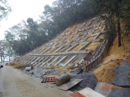 我公司承擔(dān)的東湖風(fēng)景區(qū)楓都山滑坡治理項(xiàng)目目前實(shí)施順利,已完成邊坡支護(hù)格構(gòu)梁的施工。