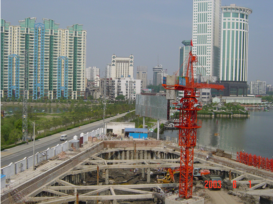 支護(hù)形式:采用鉆孔灌注樁+鋼筋混凝土支撐支護(hù)+粉噴樁止水+中深井降水。 工程特點(diǎn):層數(shù)23~29層,緊鄰西湖,位于漢口繁華的金融一條街地段,有深厚淤泥質(zhì)土,開挖深度7.0-9.0m,開挖面積10000m2。...
